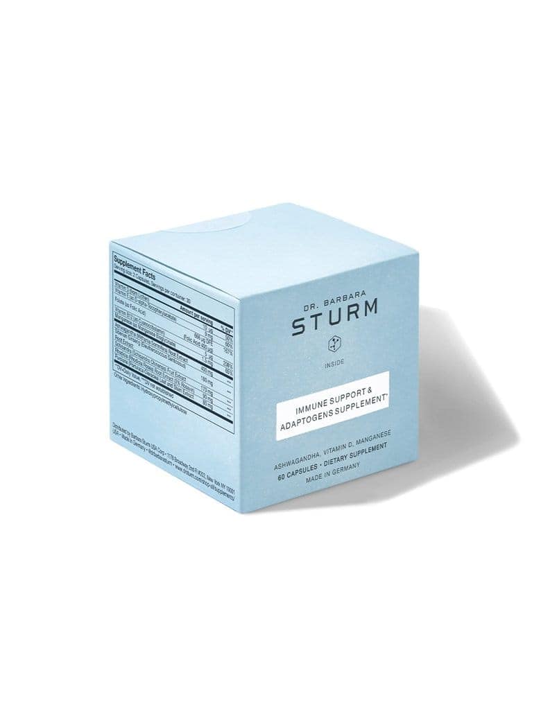 IMMUNE SUPPORT & ADAPTOGENS SUPPLEMENT is a bodyguard to aid contend with life’s stressors. Dr. Barbara Sturm formulated her new SKIN PROTECTION supplements with ingredient science that includes the anti-oxidative powerhouse Purslane, the original superfood Siberian Ginseng, and the adaptogens Ashwagandha and Rhodiola The IMMUNE SUPPORT & ADAPTOGENS SUPPLEMENT formulation also includes Schisandra, a berry packed with Lignan compounds which have calming and restorative properties. It also includes Vitamins D, E, B12 and Manganese, which contribute to the normal functioning of the immune, muscle and other systems.