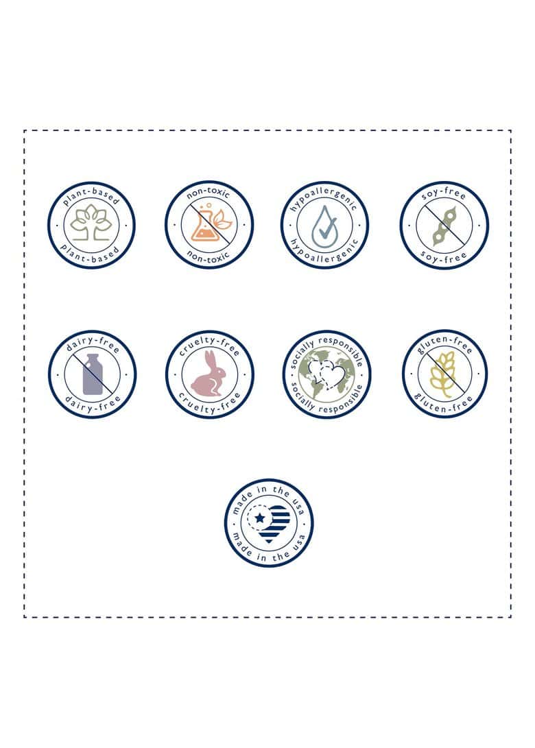 - Plant based, hypoallergenic, cruelty-free, non-toxic, gluten free, dairy free, soy-free