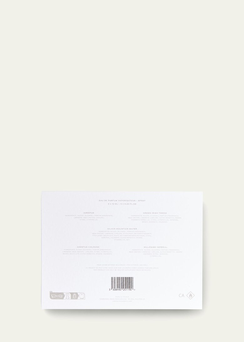 Aventus, 10mL; Aventus Cologne, 10mL; Green Irish Tweed, 10mL; Silver Mountain Water, 10mL; Millesime Imperial, 10mL