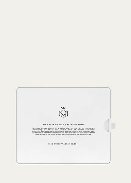 MIND GAMES Perfumer Extraordinaire Discovery Collection is a limited-edition collection featuring travel size sprays of Perfumer Extraordinaire, a Zamac travel case and ceramic diffusers. Discover the two newest MIND GAMES fragrances on your skin or enhance your personal space and spray onto the Queen ceramic diffusers and place the diffusers on the display stand.