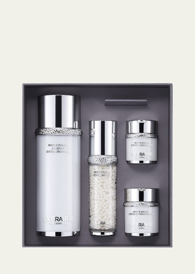 This White Caviar Complete Routine brightens and firms, while providing hydration. It is fueled by La Prairie’s Exclusive Cellular Complex™, Caviar Extract and Lumidose™, a powerful brightening ingredient. It has been encapsulated for precise delivery and magnified efficiency in White Caviar Essence Extraordinaire and White Caviar Pearl Infusion.