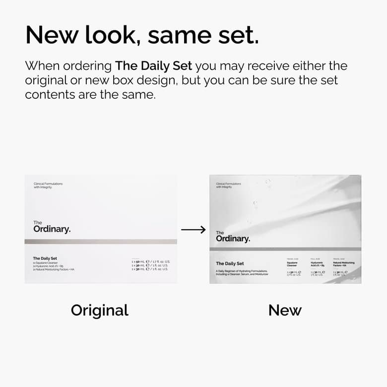 If you’re new to The Ordinary, start here. The Daily Set features three treatments that can be used in a daily skincare regimen. The Squalane Cleanser – 50ml clears away makeup and cleanses the dermal layer while supporting your skin surface’s dampness shield through water content. Hyaluronic Acid 2% + B5 (with Ceramides) – 30ml uses five forms of hyaluronic acid to help moisture to multiple layers of your skin’s surface. Finally, Natural Moisturizing Factors + HA – 30ml is a daily moisturizer that works with your epidermis to reinforce its natural hydrating effect protection. They’re the fundamental formulas for any skincare routine.