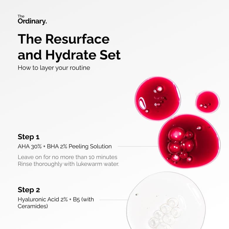 The Resurface & Hydrate Set offers a complementary pairing of formulations in travel-friendly miniature sizes for sophisticated exfoliation and lasting moisture. AHA 30% + BHA 2% Peeling Solution is an progressive-level masque that exfoliates multiple layers of the skin surface surface for brighter, more even looking epidermis. With the assist of alpha-hydroxy acids and beta-hydroxy acids, this at-home peel aids even complexion feel, clear pore congestion, and better the look of uneven skin surface tone. Hyaluronic Acid 2% + B5 is our most-loved moisturization treatment, offering instant water content and plumping. The light blend comprises five forms of hyaluronic acid, pro-vitamin b5 and ceramides, and assists replenish complexion’s moisturization levels, while also helping the dermal layer retain dampness to replump dry, dehydrated dermal layer. To use these formulas together in a routine, after cleansing with your preferred cleanser, once or twice in the evening apply a thin layer of AHA 30% + BHA 2% Peeling Solution, and leave on for up to 10 minutes. After rinsing, follow with a few drops of Hyaluronic Acid 2% + B5, and finish your system with your preferred moisturizer.