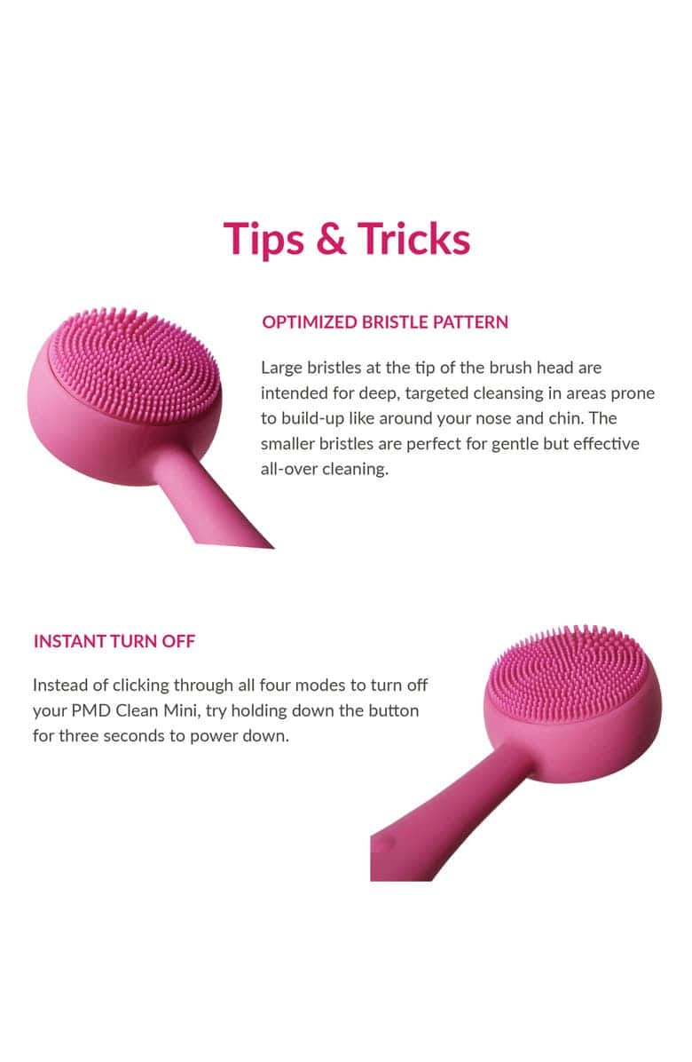 How to use: Begin by rinsing your face with warm water then gently rub in your cleanser. Wet Clean under water and power on the device. PMD recommends modes 1 and 2 for optimum cleansing result. Move the brush head in circular motions, cleansing your entire face. It’s safe to spend more time in areas that may be of personal concern. Rinse your face and pat dry. It’s gentle enough for daily use.