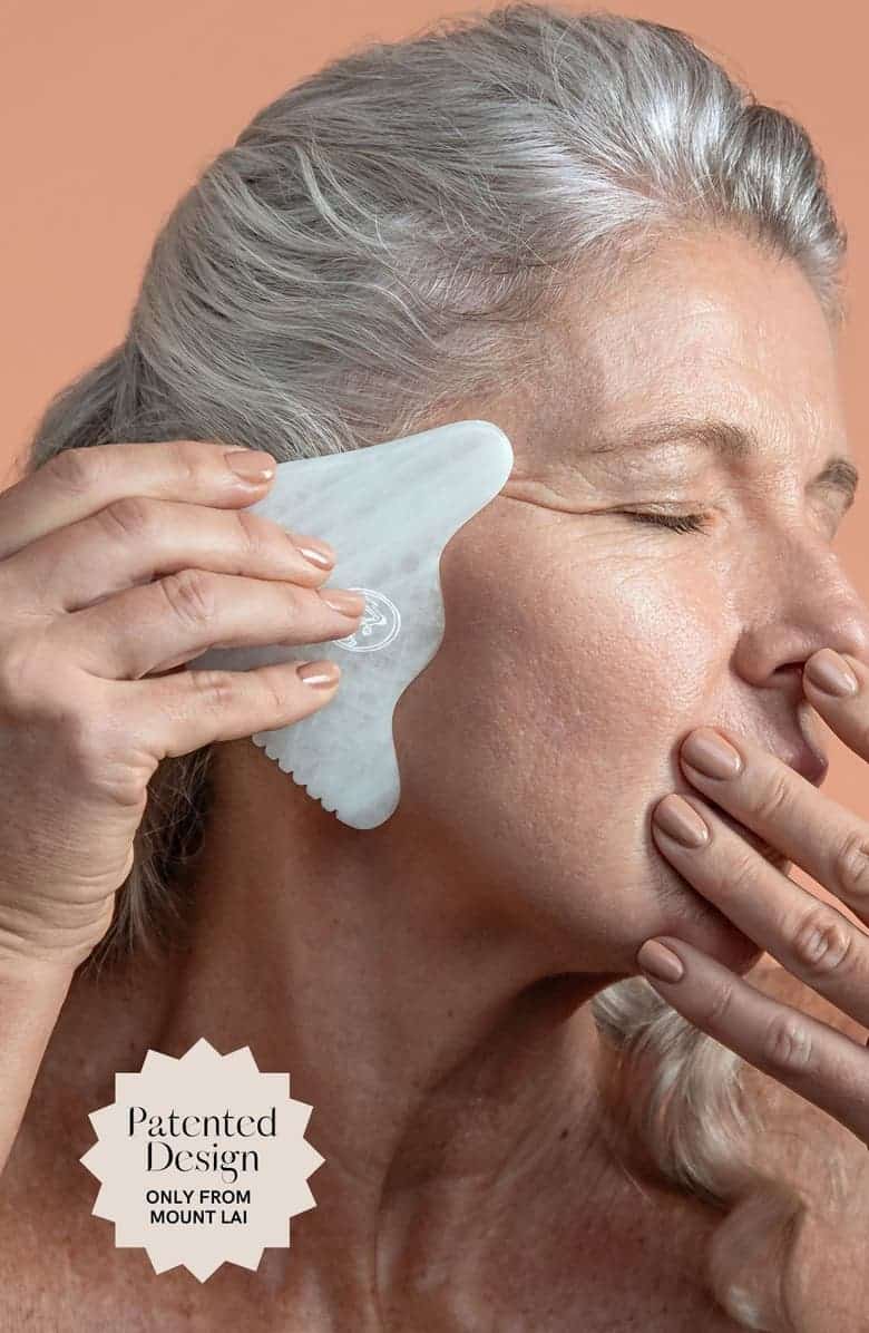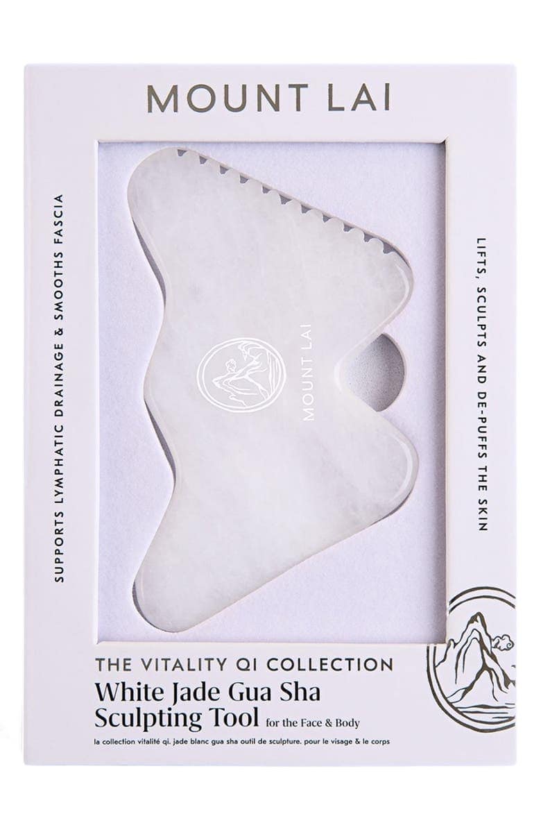 What it does: The unique, patented Vitality Qi Gua Sha Sculpting Tool offers advanced movements and results for the face and the body. Hand-crafted of premium White Jade (Bai Yu) by expert artisans, this tool strategically targets every facet of the face for the ultimate sculpting, tension melting and youth-enhancing facial massage. The tool was designed to help sculpt facial features and reduce the appearance of fine lines and wrinkles over time, encourage toning and detoxifying, smooth out fascia, melt tension from underlying muscles and help enhance the absorption of your skin-care products. It has several purposeful edges and points for your facial massage. The tool features a proprietary shape you’ll only find from Mount Lai with a smooth long edge, targeted point, V-edge, W-edge and combed edge.