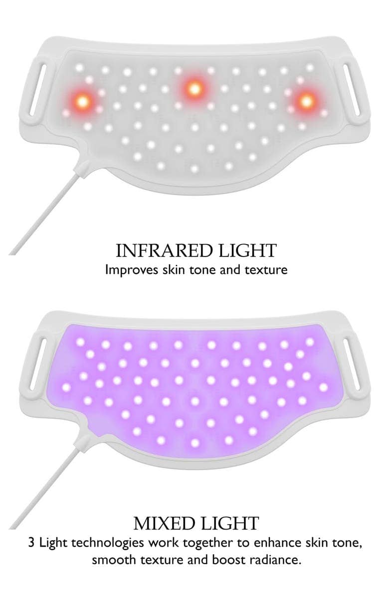 What it does: This neck mask features 57 LED lights with four colors, each targeting specific skin concerns. The red light helps promote and improve blood circulation for healthier skin. The blue light helps to reduce oil secretion and improve acne-prone skin. Infrared light helps increase skin moisture and improve roughness. Mixed light helps to improve skin imperfections and provides anti-inflammatory benefits. With its soft flexible silicone material and comfortable straps, it fits almost all neck sizes, allowing freedom of movement. Enjoy up to 60 minutes of treatment on a full charge with easy remote control operation. Choose between automatic mode to experience all LED colors or manual mode for focused treatment.