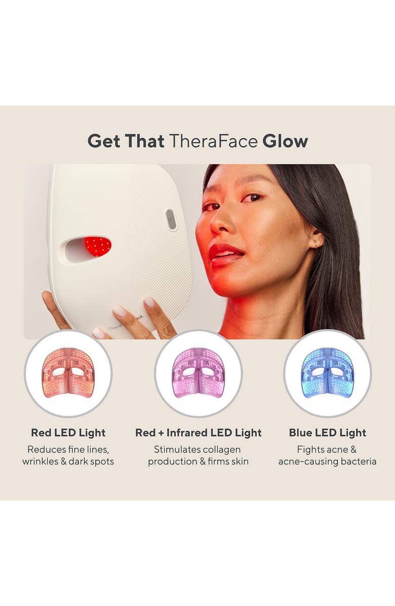 What it does: The TheraFace Mask has three LED light-therapy wavelength options: Red, Red + InfraredB and Blue. It features 648 multicolor LED lights around the face, eight vibration motors around the eyes and the nine vibration motors on the top and back of the head. Face and head vibration therapy accompanies LED light treatment during Red and Red + Infrared treatment. Only head vibration therapy is available during Blue Light treatment. The different LED therapy treatments help reduce fine lines, wrinkles and dark spots, stimulate collagen production and fight acne and acne-causing bacteria. The vibration therapy treatments promote circulation for a more refreshed look. Features and benefits: – LED treatments – Red light therapy to help reduce fine lines, wrinkles and dark spots – Red + infared light therapy to help stimulate collagen production and firm skin – Blue light therapy to help fight acne and acne-causing bacteria – Vibrating massage treatments – 17 QX-Micro Motors deliver massaging vibration therapy to key pressure points on the face and scalp to promote relaxation and stress relief – Vibration therapy around the eye area helps boost circulation for a more refreshed look – 15-minute vibrating treatment with no lights helps release facial tension for the ultimate calming massage any time – Ergonomic design for an evenly distributed full-face treatment that can deliver maximum results – Cordless, hands-free design and protective eye shields offer the ability to safely multitask during treatments – Adjustable strap offers a universal, comfort-first fit – Hard-shell design with smudge-proof matte finish is easy to clean and made to last – FDA-cleared, Class II Medical Device